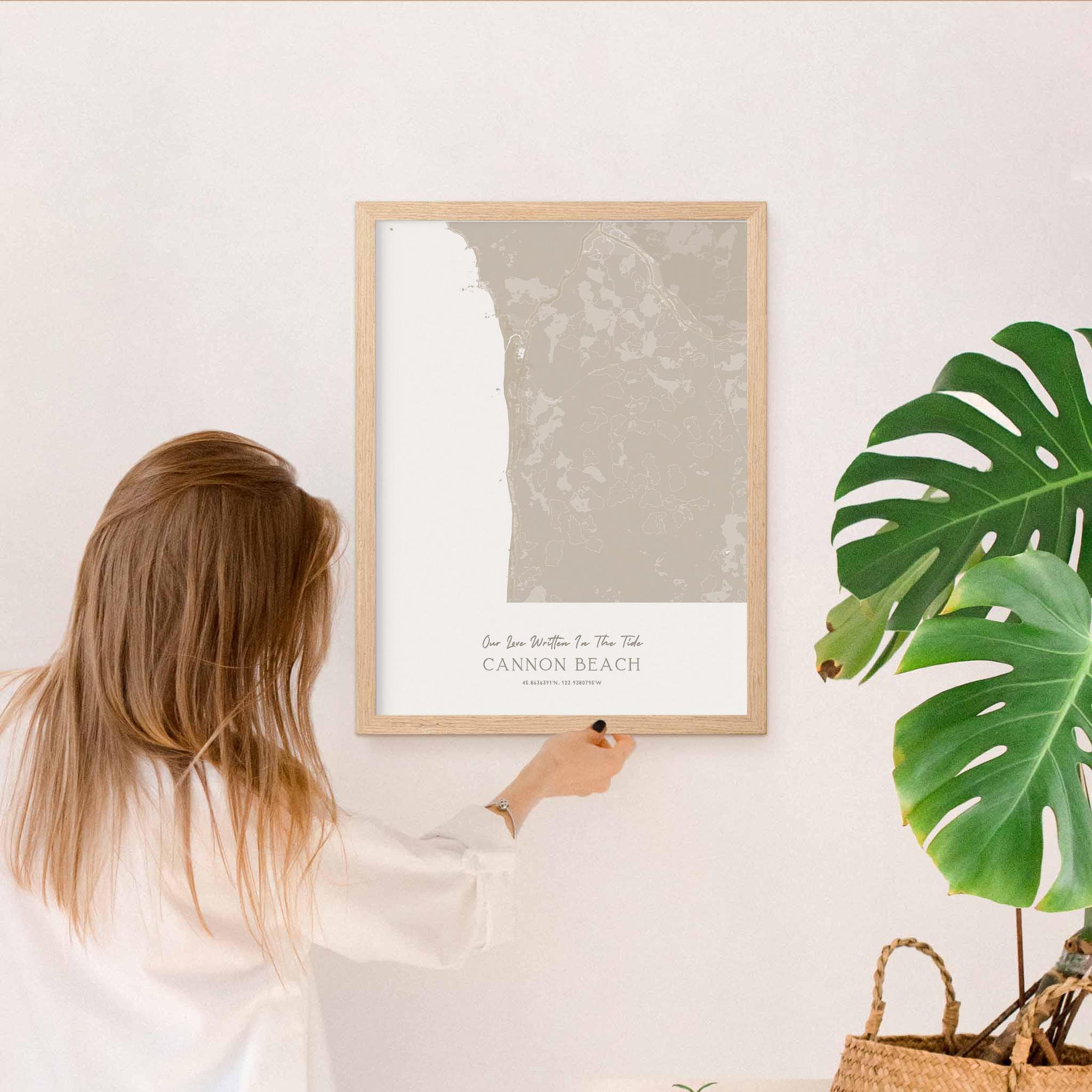 Our Custom Coastal Map is printed on high-quality archival prints and comes in a variety of map styles, frame options, and sizes to fit your space. Plus, with the convenience of auto-displaying geo-coordinates, it's easier than ever to showcase the exact location that matters most to you. Add a personalized quote or message for that perfect touch, making this artwork uniquely yours.