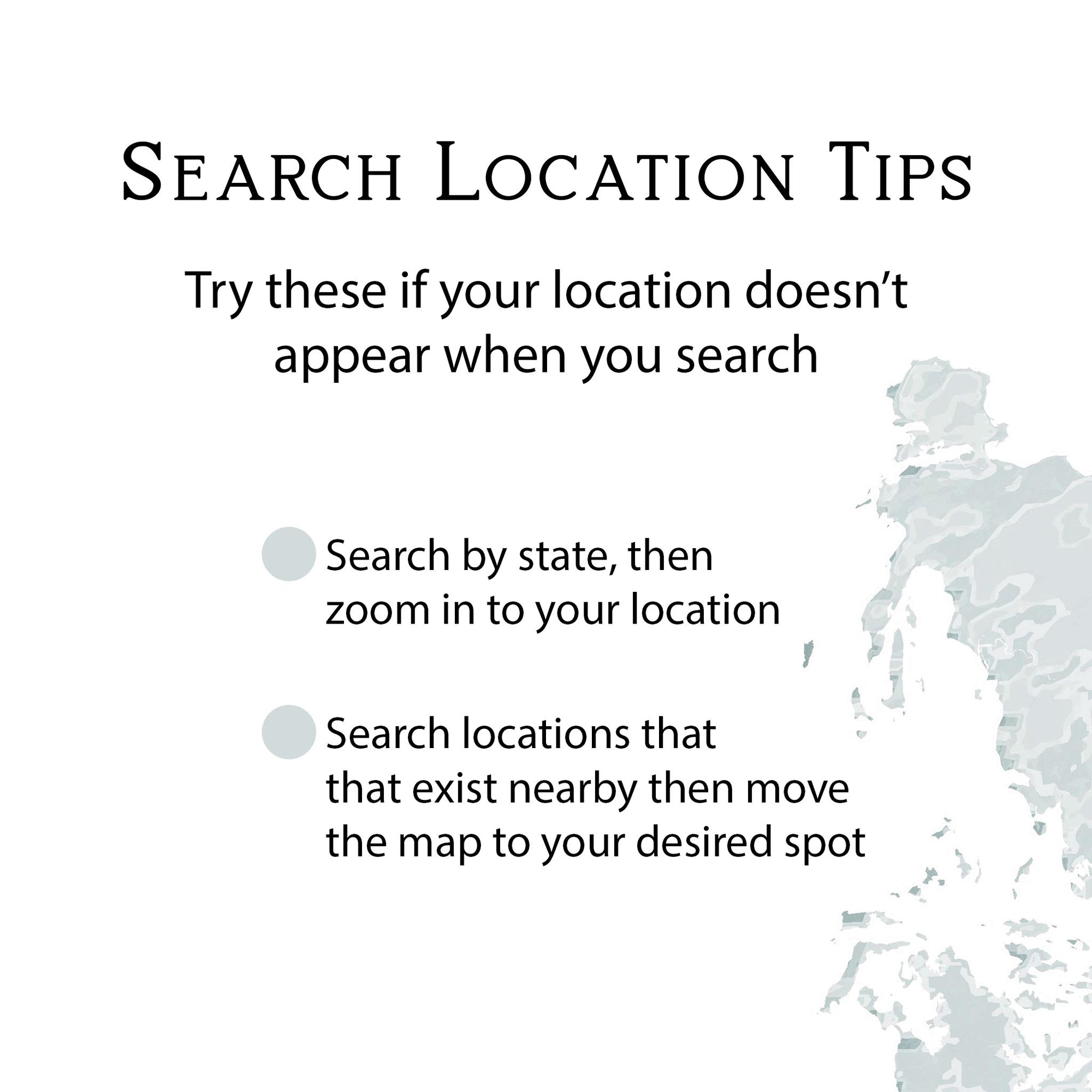Simply search for any coastal location, view the geo-coordinates, and personalize it with your own message or select from our pre-made quotes to match your style.